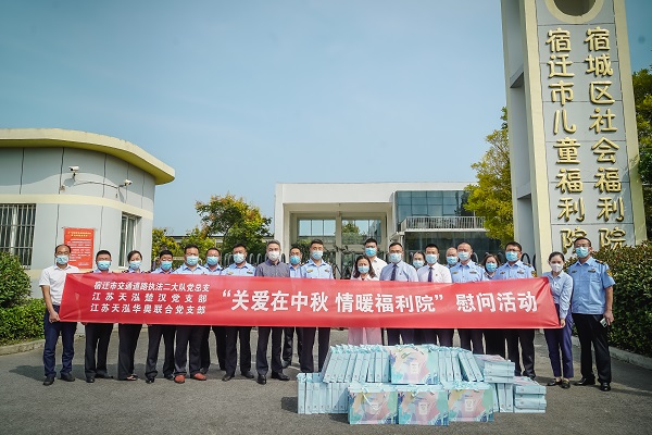 長空曉月,花好月圓。時值中秋佳節(jié)來臨之際,天泓楚漢黨支部、天泓華奧聯(lián)合黨支部與宿遷市交通道路執(zhí)法二大隊黨總支聯(lián)合開展了“關愛在中秋 情暖福利院”慰問活動,提前為福利院的孩子們送去溫暖和祝福。