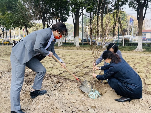 3月12日,天泓豐樂(lè)聯(lián)合黨支部的黨員、入黨積極分子赴天長(zhǎng)市釜山鎮(zhèn)一處森林公園開展“綠水青山就是金山銀山”主題黨日活動(dòng)。在植樹現(xiàn)場(chǎng),護(hù)林工作人員首先為大家進(jìn)行示范,然后由二三人組成一組,相互協(xié)作、有序分工。有的揮鍬鏟土、有的扶正樹苗、有的夯實(shí)泥土,現(xiàn)場(chǎng)氣氛熱烈。經(jīng)過(guò)1個(gè)多小時(shí)的努力,大家合力栽下100余棵樹苗。一排排新栽的樹苗迎風(fēng)擺動(dòng),在明媚的春光中展現(xiàn)出勃勃生機(jī),為初春的大地增添了綠意。